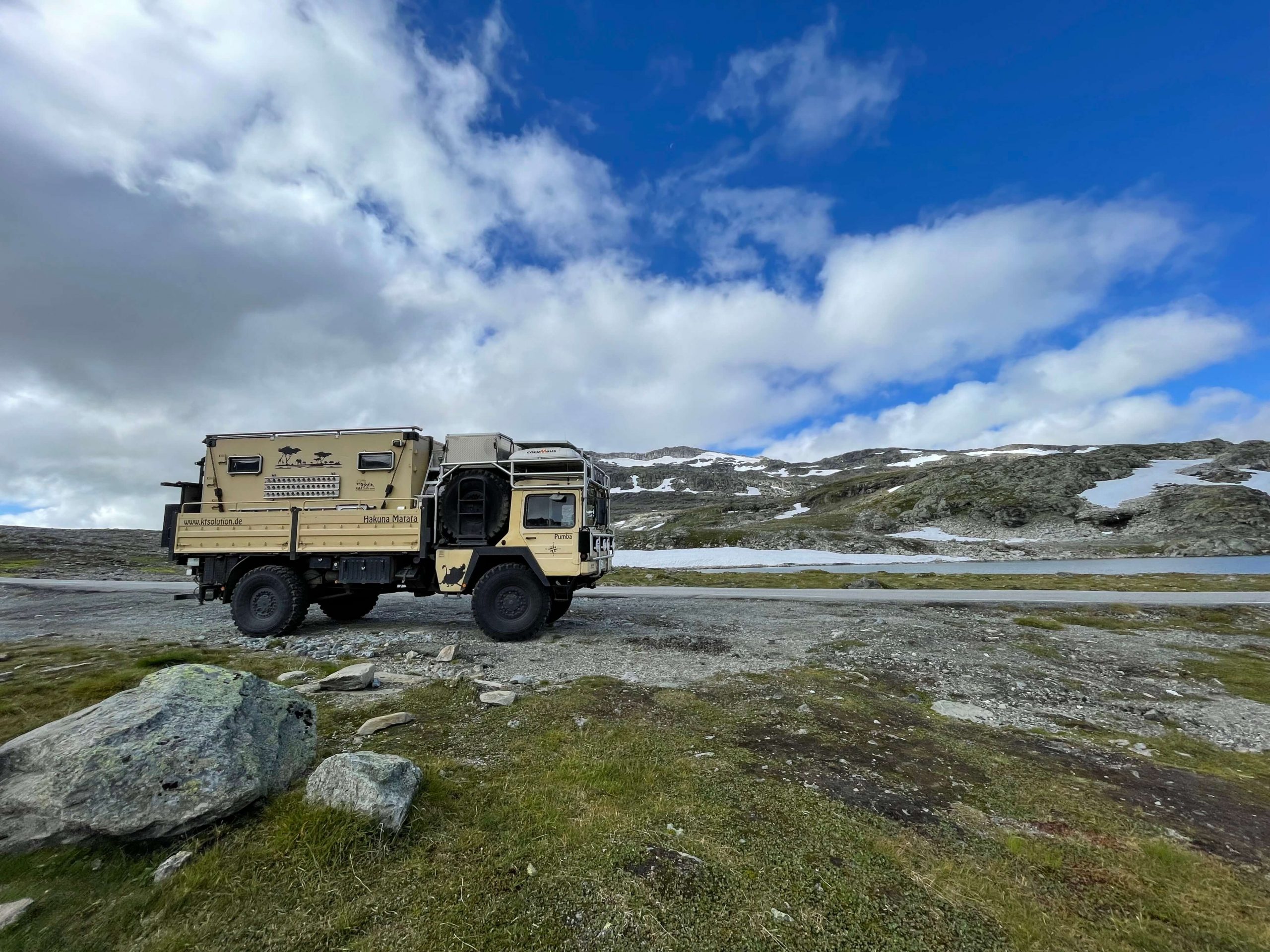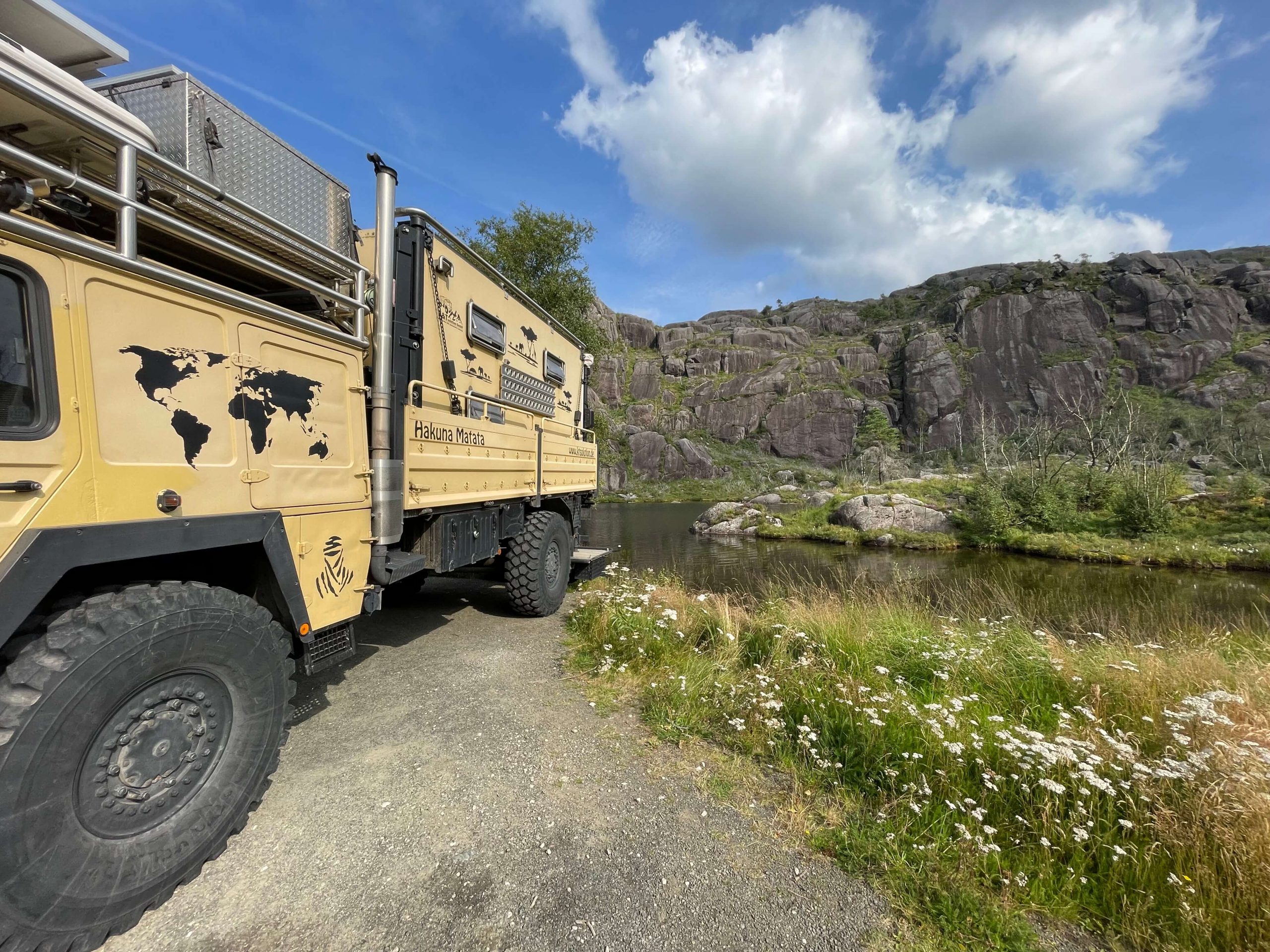 Was ist die Faszination an Norwegen? Die Kombination aus atemberaubenden Fjorden, meterhohen Wasserfällen und wunderschönen Bergregionen. Hier findet man den längsten Straßentunnel der Welt (24 km), viele Stabskirchen, den Preikestolen und den Trollstigen, dessen elf Haarnadelkurven problemlos von „Pumba“ gemeistert wurden.